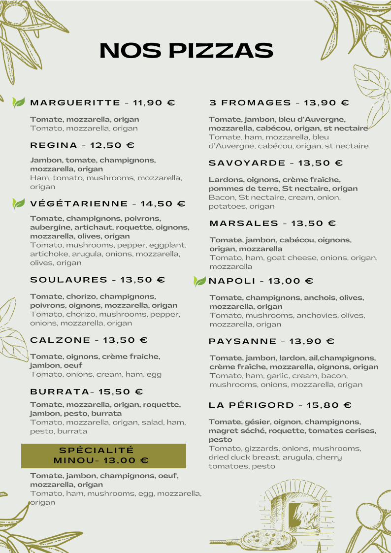 Welcome to Chez Minou, a culinary gem nestled in the heart of Monpazier, France. This charming restaurant boasts a lively atmosphere where locals and visitors alike gather to savor an array of delectable dishes. The menu delights with fantastic options, including renowned pizzas and traditional French fare like Confit De Canard, praised for its perfectly crisp skin and tender meat.